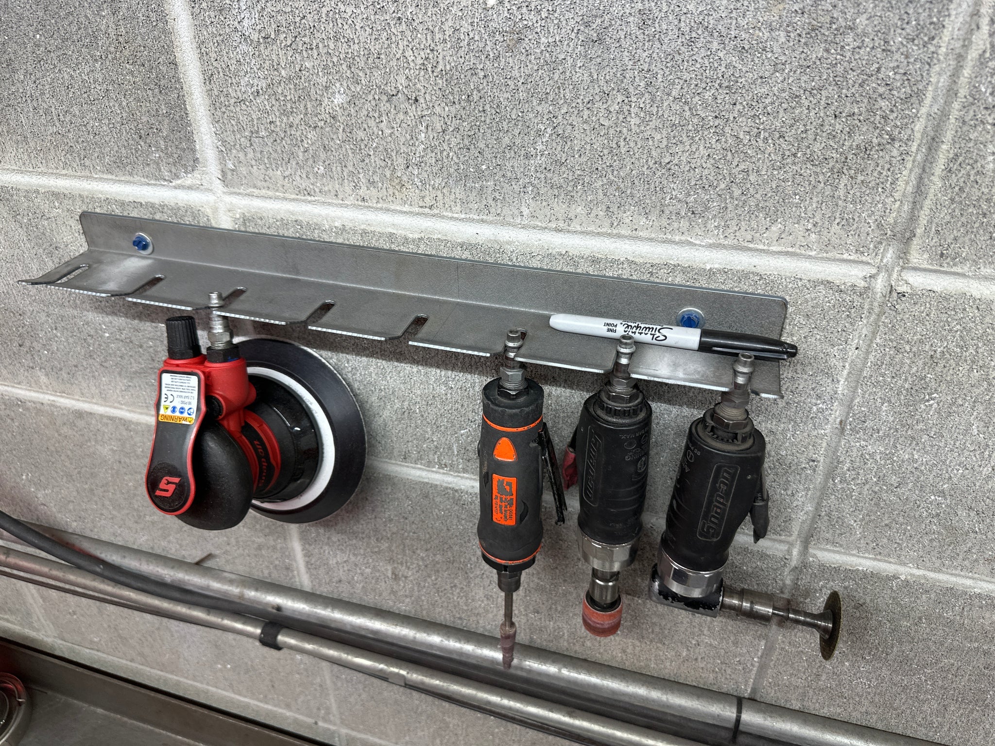CNC cut and broke from 14 gauge steel, fits conventional "industrial" style air fittings.